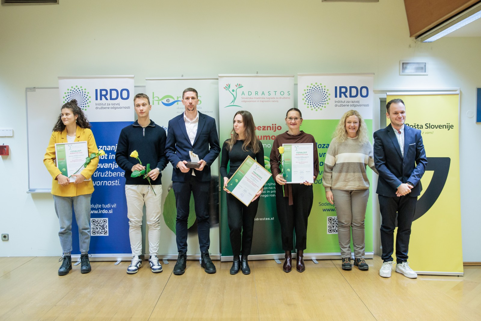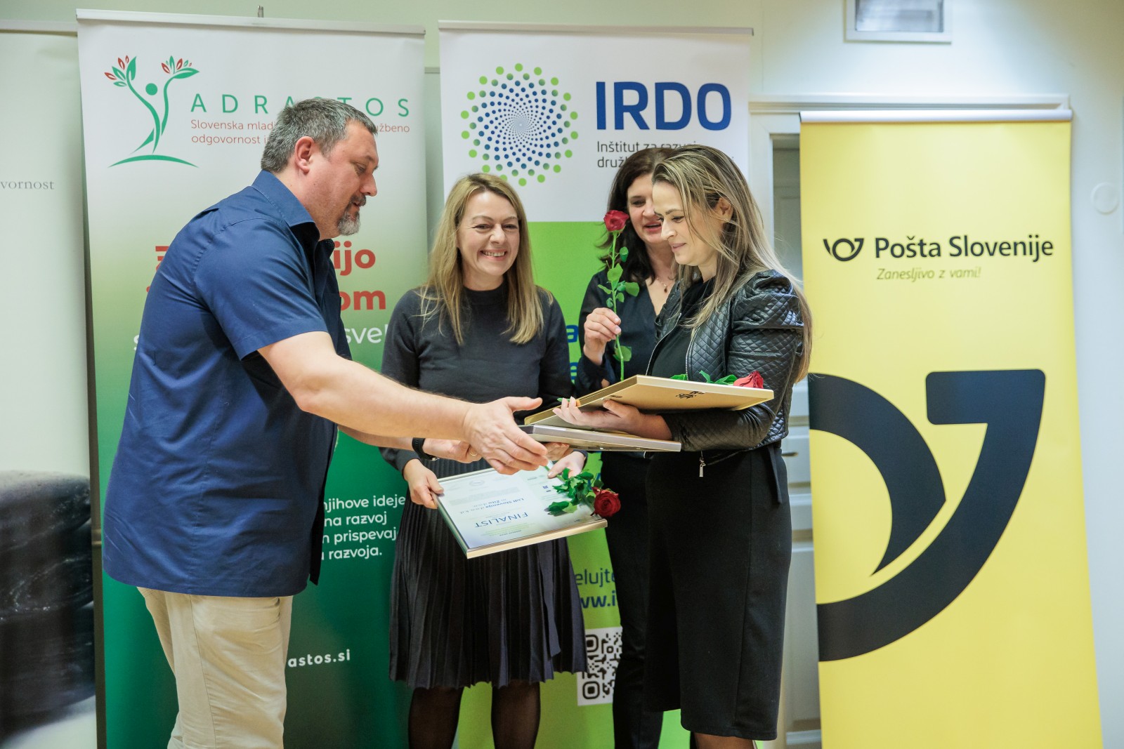 (Ljubljana, 16. december 2025) Danes je IRDO – Inštitut za razvoj družbene odgovornosti 14 izjemnim organizacijam in posameznikom podelil nagrade in priznanja za družbeno odgovornost in trajnostni razvoj HORUS 2025. Prav tako pa 8 izjemnim projektom mladih in za mlade v okviru ADRASTOS 2025 – Slovenske mladinske nagrade za družbeno odgovornost in trajnostni razvoj. Nagrada ADRASTOS je bila letos podeljena tretjič, nagrada HORUS pa sedemnajstič zapored. Častna pokroviteljica podelitve obeh nagrad je mag. Tina Kosi, direktorica Urada RS za mladino.